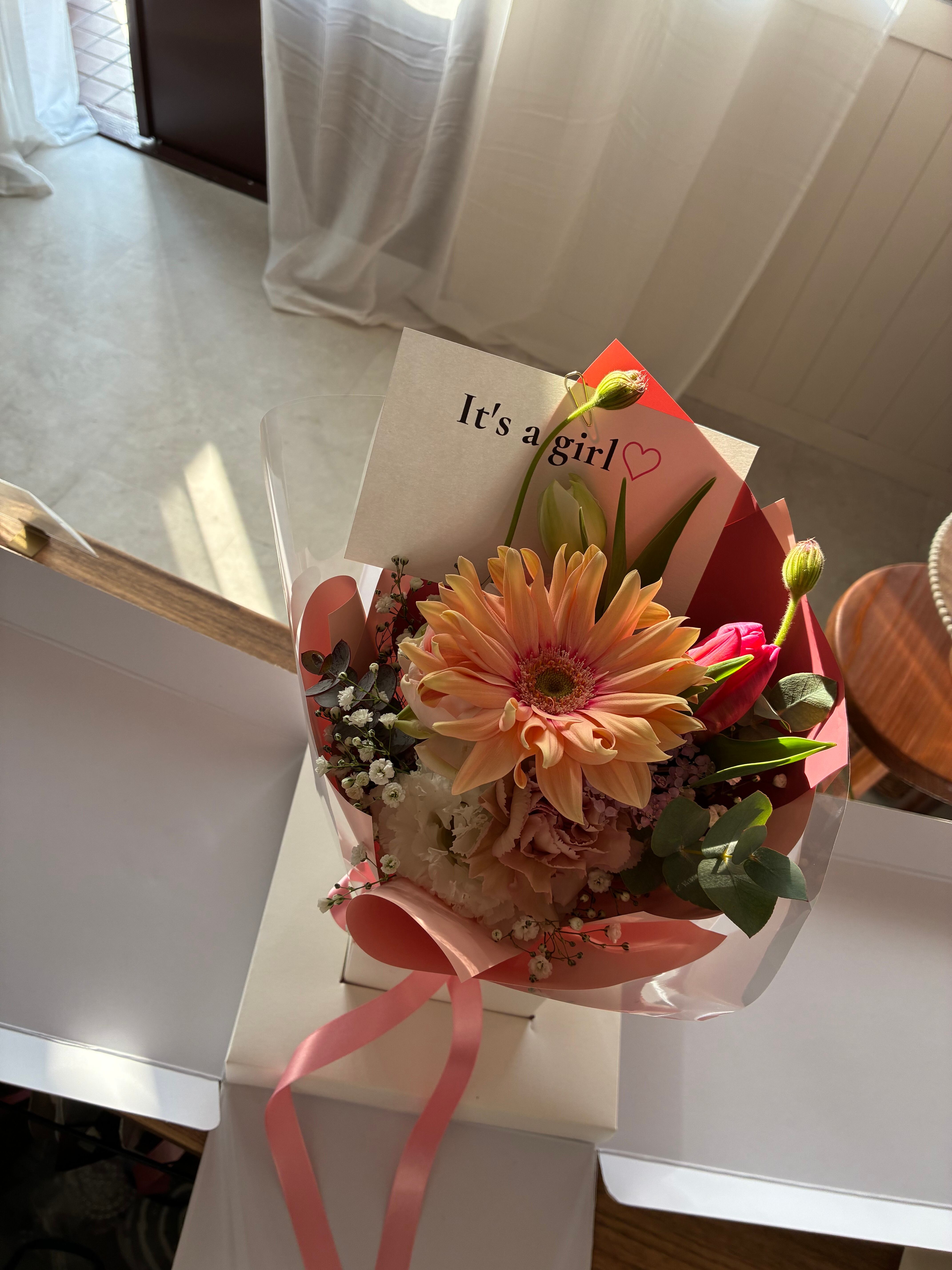 ボックスをオープンする瞬間に広がるお花とメッセージ。