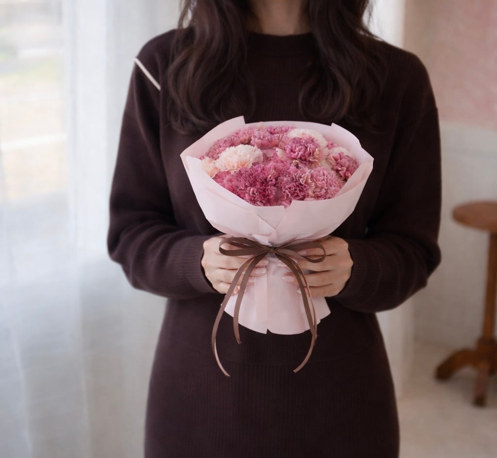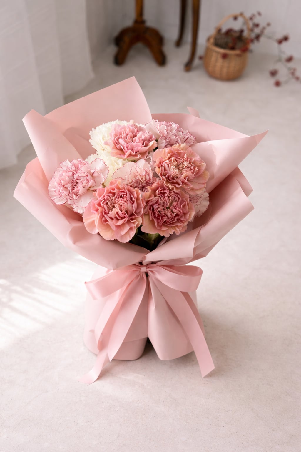 オリジナルカードを添えてオルレアンらしく可愛らしい花束を