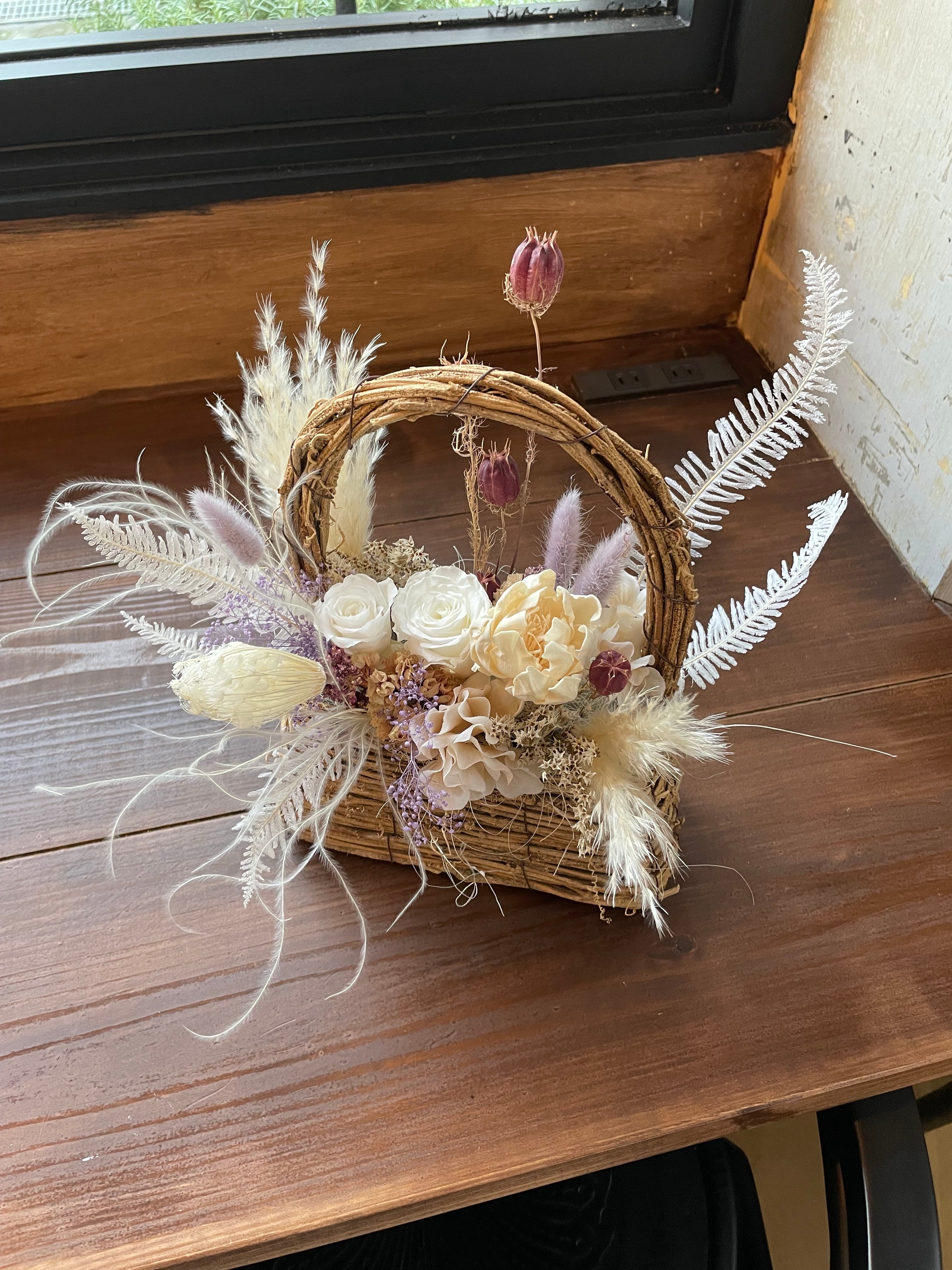 ・ドライフラワーの梱包には細心の注意を払っておりますがとてもデリケートな素材なので配送中に花や葉が多少落ちることがございます。ご了承お願いいたします。